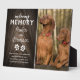 Pet memorial photo plaque featuring a rustic wooden background, a photo for your pet dogs, and a joint text template that is easy to personalize.