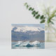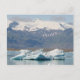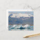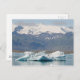 Postcard with photo of iceberg in Jokulsarlon glacial lagoon and snow capped mountains behind, Iceland.