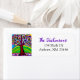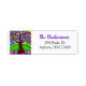 Joli mais décalé violet, vert, jaune et bleu arbre avec des fleurs pour les étiquettes d'adresse de retour d'art générées par l'ai feuille.