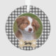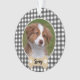 Joli design de décoration empreinte de patte de Noël pour le nom du chat (ou chien) et la photo d'un membre de la famille furry. Ce design mignon est doté d'une plaque d'os de chien avec un classique rustique arrière - plan à motif de buffle check plaid. Ce motif rustique en plastique tartan noir et blanc sera parfait comme cadeau personnalisé.