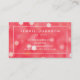 Joli carte de visite rouge de corail de wedding planner de Bokeh. Beau rouge de corail imprimé, effet rose et blanc de corail de photo de bokeh d'arrière - plan. Perfectionnez pour présenter votre nom et profession sur l'avant de la carte en texte blanc moderne. Votre information de contact est sur le dos. Modèle entièrement personnalisable.