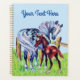 Ce planificateur a un cheval-mère assez gris le long de son colt de bébé brun par une clôture en bois dans un champ herbacé sous un ciel bleu. Customisez votre texte avec le modèle.
