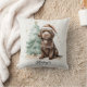 C'est un coussin avec un chien mignon et un motif de Noël.