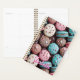 Les biscuits de macaron Yummy rose, bleu et chocolat recouverts d'arrosage personnalisé.