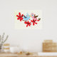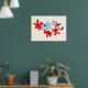 Joli couple d'oiseaux fleurs rouges poster personnalisé, avec deux oiseaux mignons rose et bleu sur une branche avec des fleurs rouges.