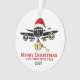 Joli Elfe dans l'avion & Santa Hat, Amusant Noël Ornement de Noël. Design présente une illustration minimaliste d'un gros avion surmonté d'un chapeau de Père Noël rouge. Un elfe mignon est vu accroché à une ficelle de lumières de Noël depuis un avion portant un chapeau de Père Noël. Ceci a un texte personnalisable "Joyeux Noël et Joyeux Nouvel An 20ans" Parfait pour les vacances! Contactez-moi pour d'autres modifications avant de passer votre commande. Merci de visiter notre magasin ! Copyright Soar in Style Designs LLC.