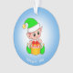 Joli elfe de Noël, nom personnalisé sur l'ornement bleu clair.