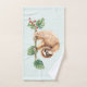 Serviettes avec un adorable parfum accroché à l'envers d'une branche d'arbre. La branche d'arbre est décorée de feuilles tropicaux et de baies. Placez-vous sur un arrière - plan vert clair.