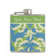 Un joli Hip Flask à personnaliser, avec un motif de style Art Nouveau de Lilies-of-the Valley sur un arrière - plan Bleu ; de la collection Posh & Painterly 'For the Love of Lilies'.