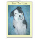 Cette belle carte de notes a une photo de "Badger" sur le devant. Badger était un chien de collie frontalier très spécial, il était un chien secourt et il vivait jusqu'à l'âge de 16 ans. Ce garçon fidèle et loyal passait presque chaque moment avec sa "maman". C'était un chien qui travaillait et elle était jardinière, ils ont fait la paire parfaite, mais malheureusement il est mort il y a quelques années. J'ai peint ce portrait de Badger avant qu'il ne passe, il a toujours porté son petit peluche bleu autour de lui, alors le peluche était très adapté à son portrait. Je pense que Badger le collie chien a l'air super sur cette carte de note. La carte est très pratique pour envoyer une note de rappel rapide peut-être pour une date spéciale ou peut-être une note pour rappeler à quelqu'un la prochaine réunion d'entraînement de chien ou parce que Badger invite quelqu'un à jouer avec lui et son jouet la carte fera une invitation appropriée à tout événement ou fête. Mais quoi que vous choisissiez d'utiliser cette jolie carte originale pour elle est sûr d'être remarqué. Cette carte de note personnalisable peut être personnalisée à l'avant et à l'intérieur pour vous permettre d'ajouter votre propre texte personnel.