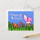 Joli lapin de Pâques et oeufs en Grass carte posta