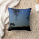 Un cheval dans le ciel nocturne avec un croissant de lune et des chênes. Une jolie coussin de couleur bleue.