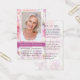 Cette carte de prière commémorative peut être remise en souvenir lors d'une célébration de la vie ou d'un service funéraire ou en hommage spécial à ceux qui n'ont pas pu y assister. Cette carte peut être personnalisée avec une photo préférée et votre choix de prière ou de poème.