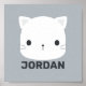 Ce design présente un joli petit chat avec un nom personnalisé dans un style de police sans empattement gris moderne sur un fond gris clair.