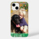 Joli iPhone 14 coque avec fleurs et bordure plante verte. Ajoutez votre photo préférée pour customiser votre coque.
