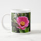 Cette énorme tasse présente une photo détaillée d'une superbe fleur rose de Zinnia. La photographie a été prise en utilisant la macro photographie pour un résultat extrêmement détaillé.