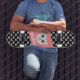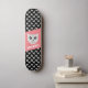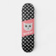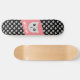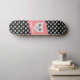 Un joli skateboard noir avec une empreinte de chat et de texte "meow".