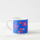 Une jolie Mug Espresso, avec un motif de fleurs en violet, turquoise, rose et orange sur un arrière - plan Sky Blue, d'un collage de papier peint à la main par Judy Adamson. Vous pouvez facilement modifier la couleur de l'arrière - plan à l'aide du bouton Modifier.