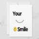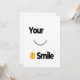 Envoyez de l'amour et de la positivité avec cette carte d'encouragement avec un joli visage souriant. Parfait comme une invitation, une note de motivation, ou une surprise réfléchie pour les amis, la famille et les proches. Avec son simple émoticône de sourire et son texte "sourire" stimulant, cette carte répand joie, encouragement et énergie positive à chaque instant.