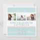 Trois photos de votre fille sont agrémentées de jolies tourbillons et d'un faux ruban dans ce design de graduation en aqua douce turquoise avec des accents gris blanc et pâle.