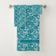 Joli Turquoise Turquoise Blue Floral Motif Monogramme Serviette de bain set avec espace pour votre nom ou monogramme. Facile à customiser avec du texte, des polices et des couleurs. Créé par le designer pro Zazzle BK Thompson © exclusivement pour Cedar et String; veuillez nous contacter si vous avez besoin d'aide pour le design.