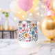 Fleurs roses, orange, bleues et jaunes dans un style d'art populaire fantaisiste monogrammed tumbler.