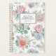 Plannière personnalisée féminine avec des illustrations aquarelles de succulents et fleurs rose pastel, bleu et vert. Personnalisez en ajoutant votre nom ou votre courte phrase. Ce joli fleuriste succulent sera parfait comme cadeau personnalisé. Des éléments correspondants sont disponibles.