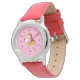 Montre avec l'illustration d'une princesse heureuse portant une robe rose à cheval sur un poney, beau cadeau pour les petites filles et une grande décoration pour une crèche ou une chambre de fille
