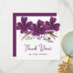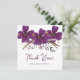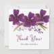 Une belle carte de remerciements avec de jolies fleurs d'aquarelle violette accentuées de petits points dorés remplis d'un effet de parties scintillant numérique. L'arrière comporte un espace réservé pour votre photo et message spécial.