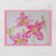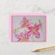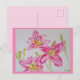 Carte postale d'anniversaire florale à l'aquarelle avec lys rose. Conçue à partir de mon aquarelle originale.