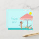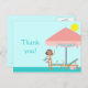 Ce pool party anniversaire merci carte postale a un thème de piscine mignon. Il y a un parasol surdimensionné avec un transat, une radio et une fille tenant un ballon de plage. Vous pouvez facilement customiser l'envers avec vous remerciement. com