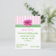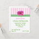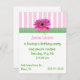 Jolie invitation à la fête de fille faite avec des rayures roses et blanches au sommet, bordée d'un ruban vert et blanc en vichy et d'une marguerite rose Gerber. Customisez tous les champs de texte selon vos besoins, avec le style de texte, la couleur et la taille.