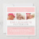 Trois photos de votre belle petite fille sont accentuées avec de jolis remous et un ruban de faux dans cette conception de baptême ou de baptême. Tous les détails de célébration sont facilement customisés sur le dos.