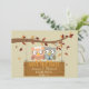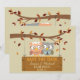 Jolie conception d'invitation de mariage save the date, style cartoon avec des hiboux mariés. Veuillez personnaliser le texte au recto et au verso également. Si vous retournez l'invitation, vous obtenez le dos des hiboux. Conception de bannière en bois pour le texte à personnaliser. Si vous avez besoin de papeterie supplémentaire, comme des cartes RSVP ou des cartes de remerciement avec les hiboux, faites-le moi savoir ! Couleurs d'automne. Le plus approprié pour un mariage automnal.