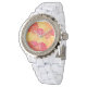 Magnifique montre personnalisable aux fleurs orange et rouge. Fait un grand cadeau à la femme dans votre vie.