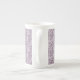 Un joli café chinois d'os, avec un motif de Lilies-of-the-Valley en blanc sur un arrière - plan mauve ; de la collection Posh & Painterly 'For the Love of Lilies'.