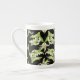 Un joli Bone China Coffee Mug, dans le style Art Nouveau, avec Lilies-of-the Valley sur un arrière - plan noir ; de la collection Posh & Painterly "For the Love of Lilies".