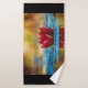 Serviette sertie d'une photo d'un étang avec une jolie fleur de lotus rouge qui pointe au-dessus.
