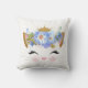 Coussin de Jeu de fille douce avec des graphismes d'un visage de chatte mignon avec nez en forme de coeur rose, de gros cils, oreilles en parties scintillant dorée et couronne et fleurs bleues sur sa tête. Customisez d'ajouter votre propre texte. Idée cadeau mignonne pour toute fille d'âge ou amoureux des chats.