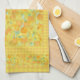 Joli serviette de cuisine ou serviette de thé, avec un mélange'n'match motif de jonquilles dorées et en vichy de contrôle coordonné, d'une aquarelle peinte à la main par Judy Adamson.