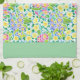 Une très jolie serviette de cuisine ou de thé, avec un motif de primroses, jaunes et bleues, d'aquarelle peinte à la main par Judy Adamson. La bordure de cette serviette est en vert Mint mais d'autres couleurs sont disponibles.