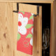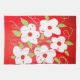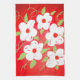 Serviette de thé élégante aux fleurs blanches accentuées en vert et rouge. La fleur blanche peut être changée en n'importe quelle couleur pour correspondre à votre décor.
