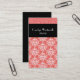 Carte de visite élégante femme, faite dans un motif mandarin orange et blanc damassé, avec une bande noire en gras, sur le dessus, et noir solide sur le dos. Le texte blanc est prêt à être personnalisé avec vos informations. Une belle carte de démarcation qui convient à tous les types d'occupation ou d'affaires.