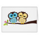 Chouettes jaunes et bleues douces perchées sur une illustration de branche d'arbre.