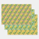 Un ensemble de 3 feuilles de papier d'emballage plat avec un joli motif en tranches et en quarts de citrons et de citrons. © ArianeC Illustrations-Tous droits réservés