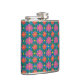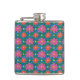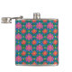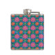 Joli flacon de hanche enveloppé de vinyle, avec un motif coloré de Fleurs rouges et roses et Pois jaunes sur un Arrière - plan profond bleu et vert. Faisant partie de la collection Posh & Painterly 'Rangoli', ce motif peut être ajusté pour s'adapter à n'importe quel flacon.