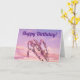 Mon oeuvre originale sur cette jolie carte est la photo originale d'une fleur de printemps rose, stylisée avec une technique de peinture à l'aquarelle pour un aspect artistique, sur un ciel de coucher de soleil violet. Le recto de la carte indique "Joyeux anniversaire !" et l'intérieur de la carte indique "Penser à vous lors de votre journée spéciale et vous souhaiter toujours beaucoup de bonheur !". Une belle carte pour les amateurs de fleurs.