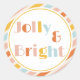 This Christmas sticker features the message "Jolly and Bright" in a colourful retro modern stylized font and has a matching stripe pattern background. Perfect for sticking anywhere that needs a little holiday cheer. Use as an envelope seal for your Christmas cards to add some festive charm. This Christmas sticker is part of our Jolly and Bright Christmas collection. For matching cards, wrapping paper, and more, please visit the collection on this page.