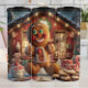 With an endearing smile and candy details, this gingerbread man stands amid a frosty village of gingerbread houses and trees. The snowy ground is sprinkled with falling ornaments, giving it a storybook charm.