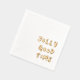 Party guests will love these playful party napkins featuring gold foil typography with the saying - Jolly Good Time.